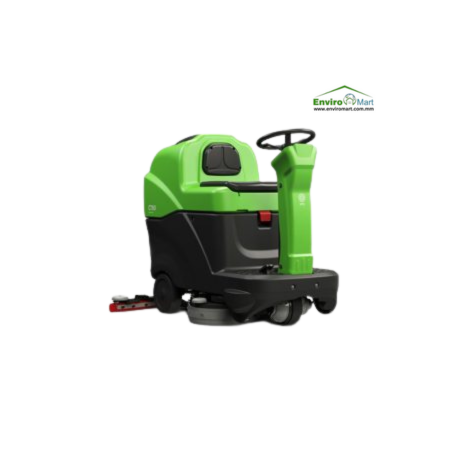 A "ride-on scrubbing machine" is a large, motorized floor cleaning machine that an operator can sit on to drive and clean large floor areas. It is also commonly known as a ride-on scrubber-dryer.